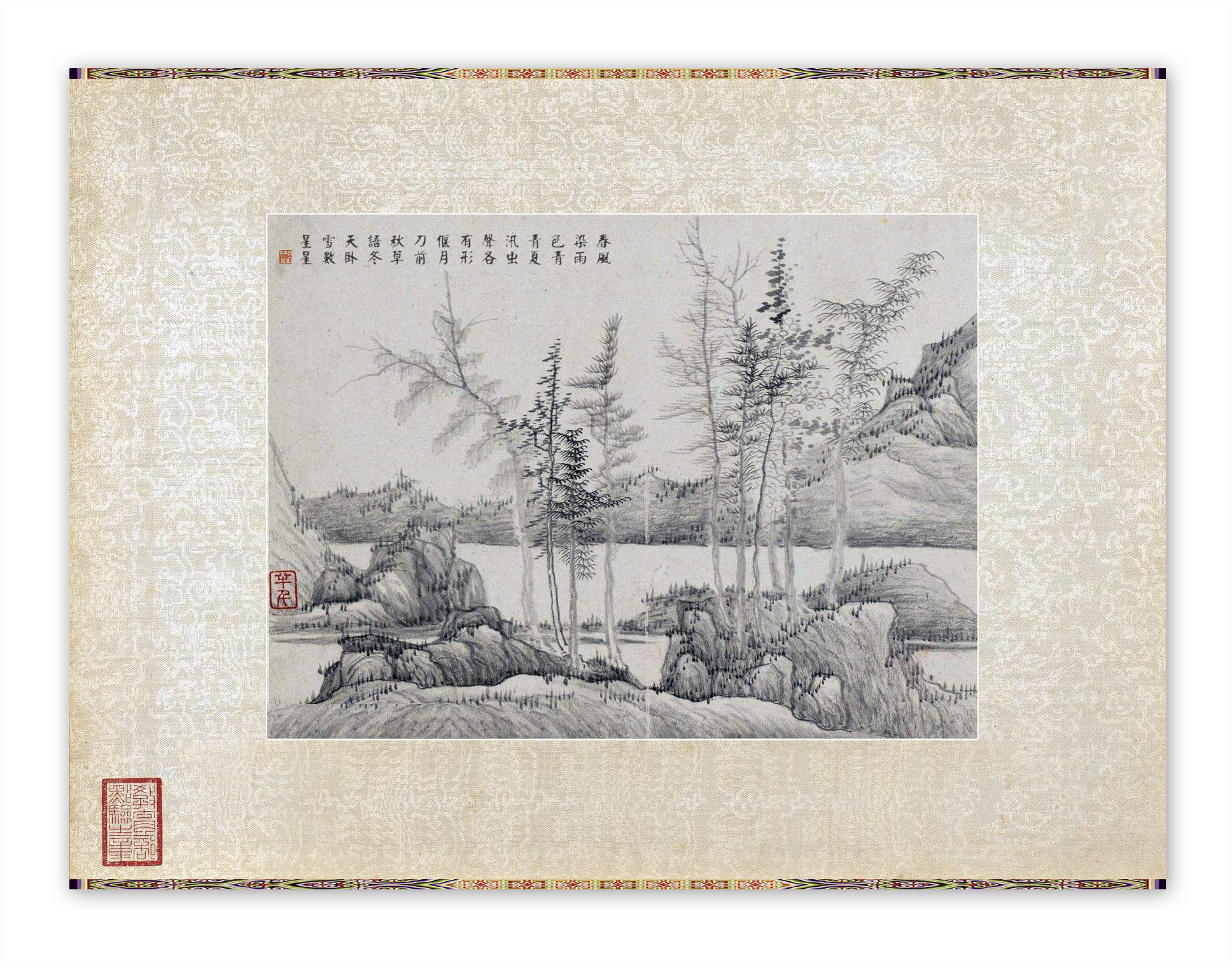 所藉清•周亮工《集十四名家山水》十七幅,并扉页题写“心乎 爱矣” 一幅,共十八幅,冊页。台北故宫博物院藏。