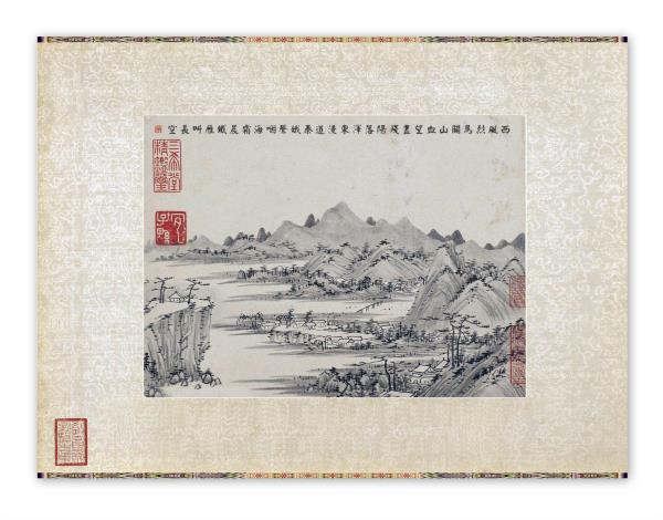 所藉清•周亮工《集十四名家山水》十七幅,并扉页题写“心乎 爱矣” 一幅,共十八幅,冊页。台北故宫博物院藏。
