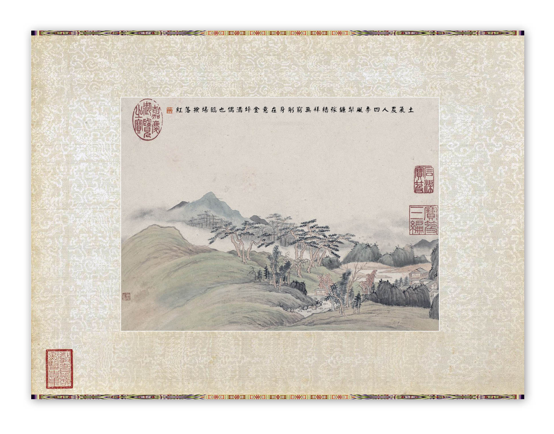 所藉清•周亮工《集十四名家山水》十七幅,并扉页题写“心乎 爱矣” 一幅,共十八幅,冊页。台北故宫博物院藏。