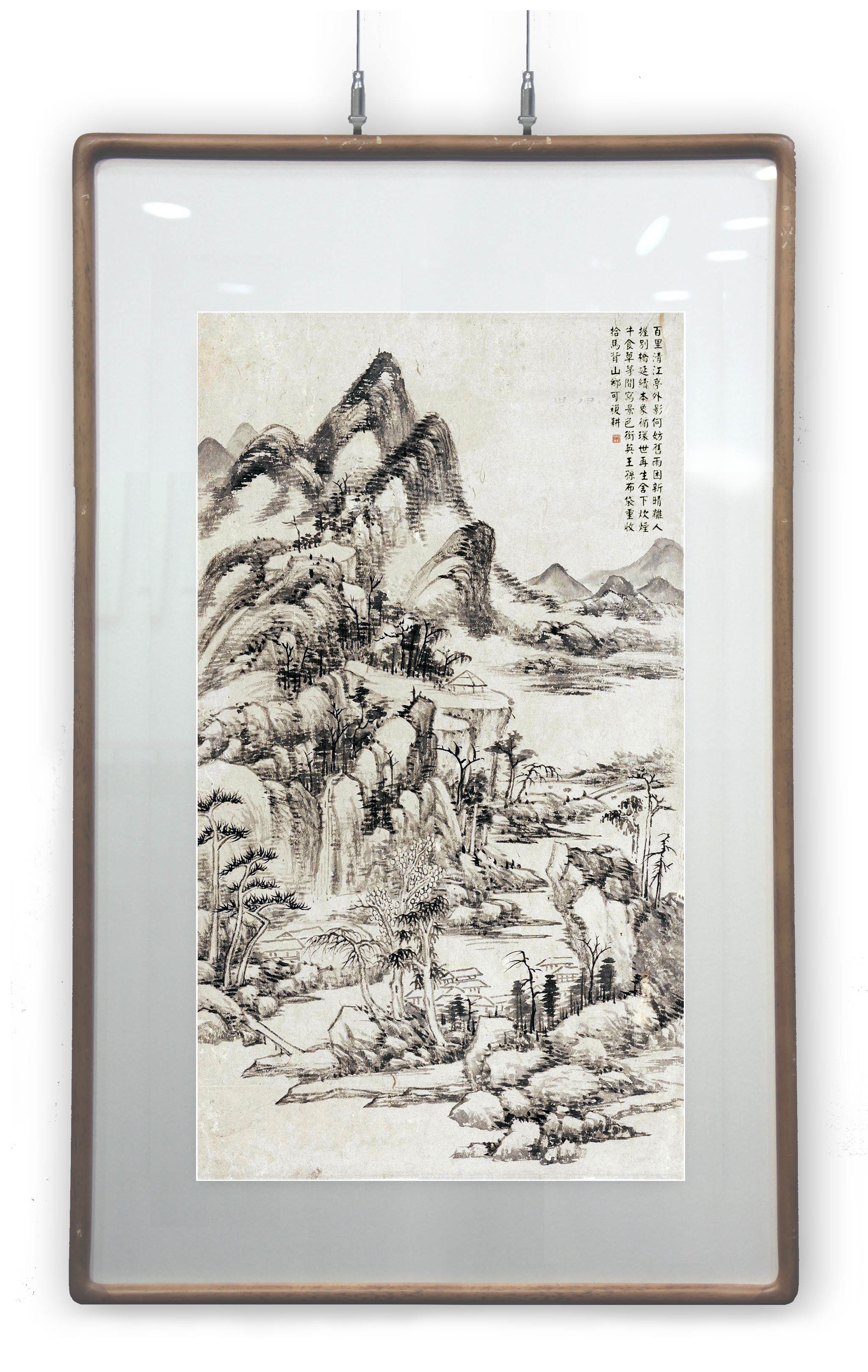 所藉清雍正十二年•王昱《春山幽居图》镜心,纸本,水墨, 画幅纵58厘米,横31厘米。