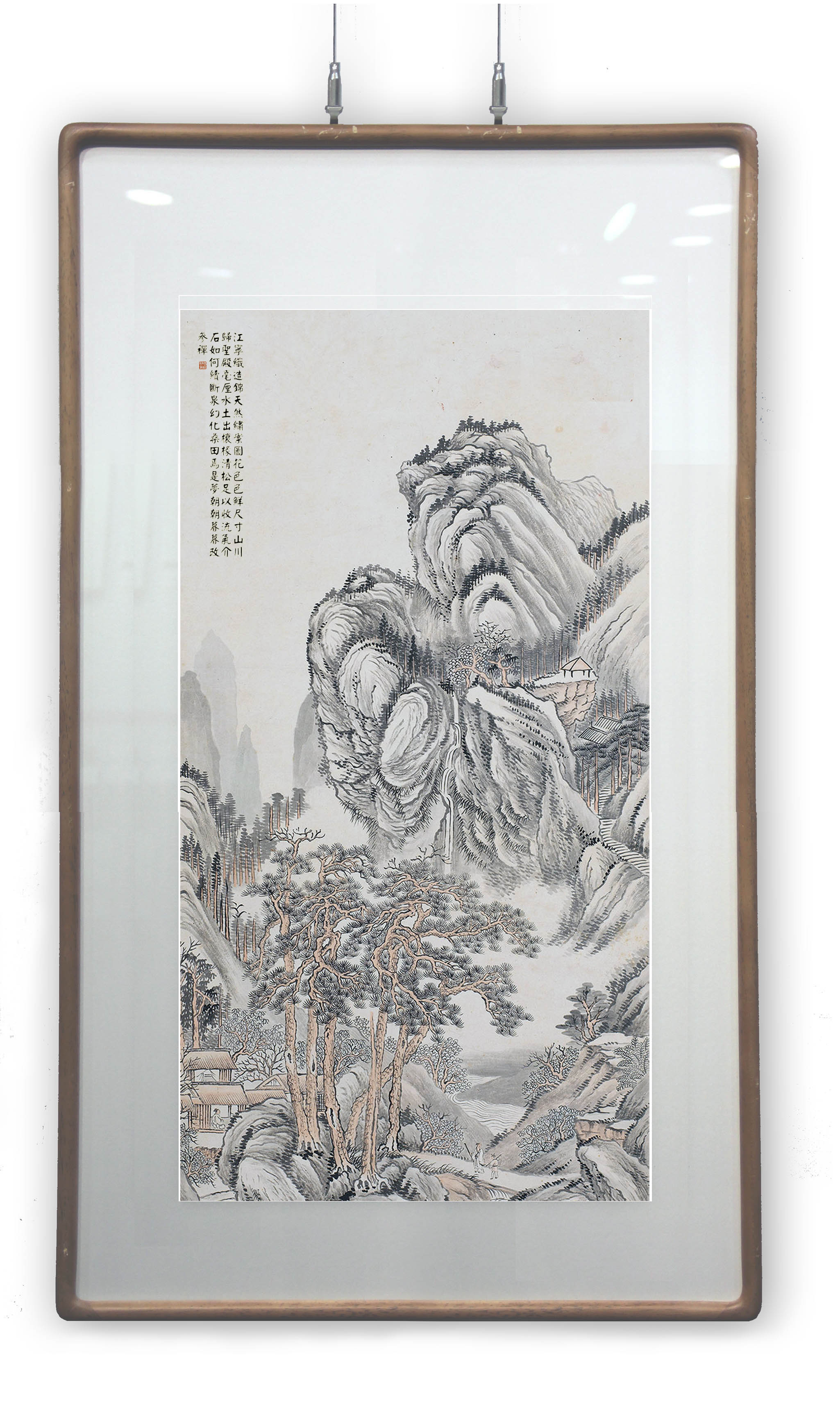 所藉清•吴大澂《采芝图》立轴,纸本,浅设色,画幅纵132.5厘米,横51.5厘米。
