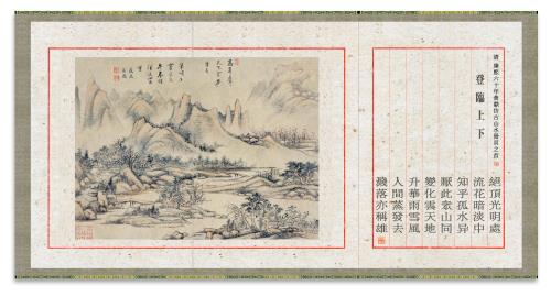 所藉清•黄鼎康熙六十年,即公元1721年作《仿古山水》册页八开之二,纸本,水墨,浅设色,画幅纵27厘米,横35.5厘米。