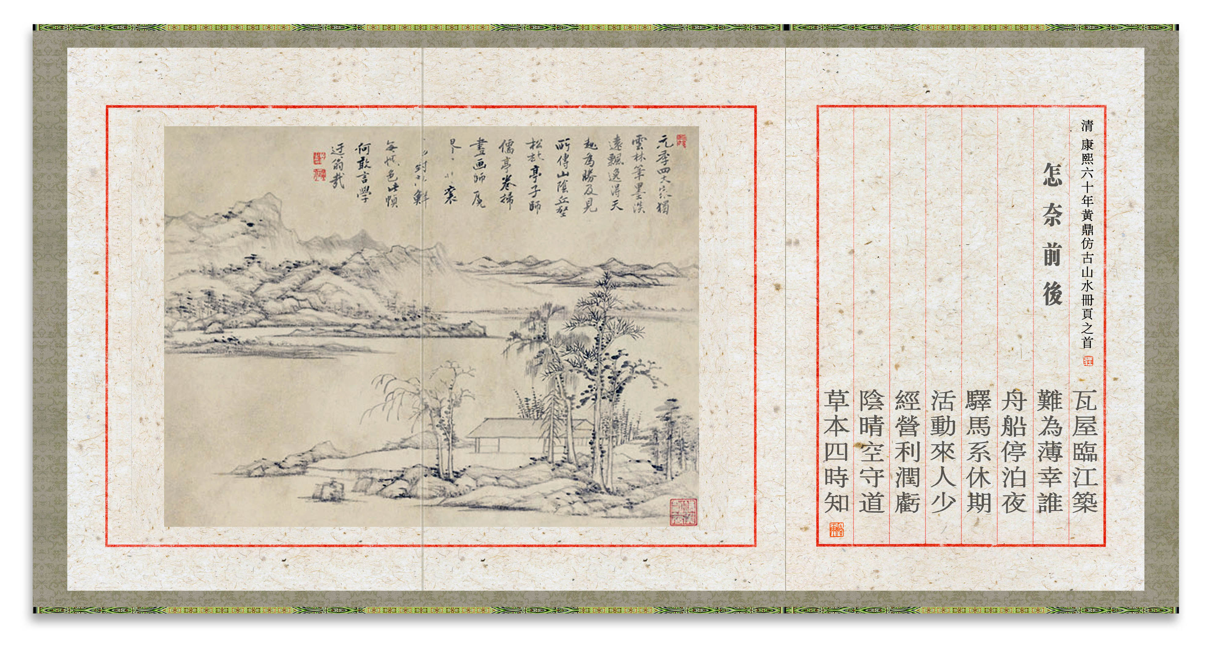 所藉清•黄鼎康熙六十年,即公元1721年作《仿古山水》册页八开之末,纸本,水墨,画幅纵27厘米,横35.5厘米。