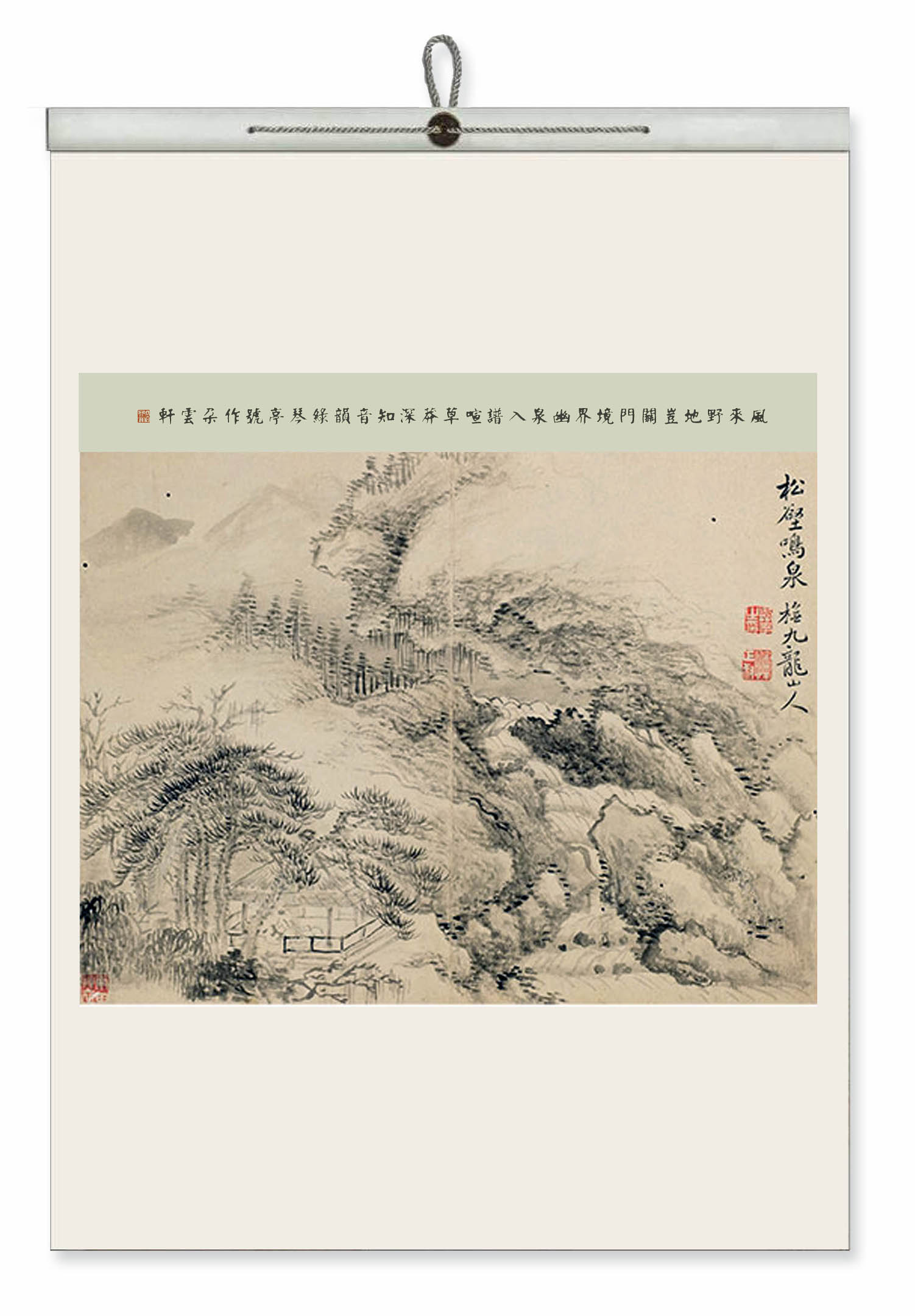 所藉清•恽寿平《仿古山水》册页,十二开,纸本,画幅纵26厘米,横34厘米。款识“松壑鸣泉 摹九龙山人”。