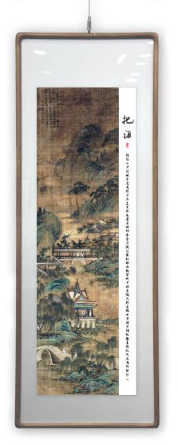 所藉明•佚名《仙乡楼阁》立轴,设色,绢本, 画幅纵224厘米,横60厘米。