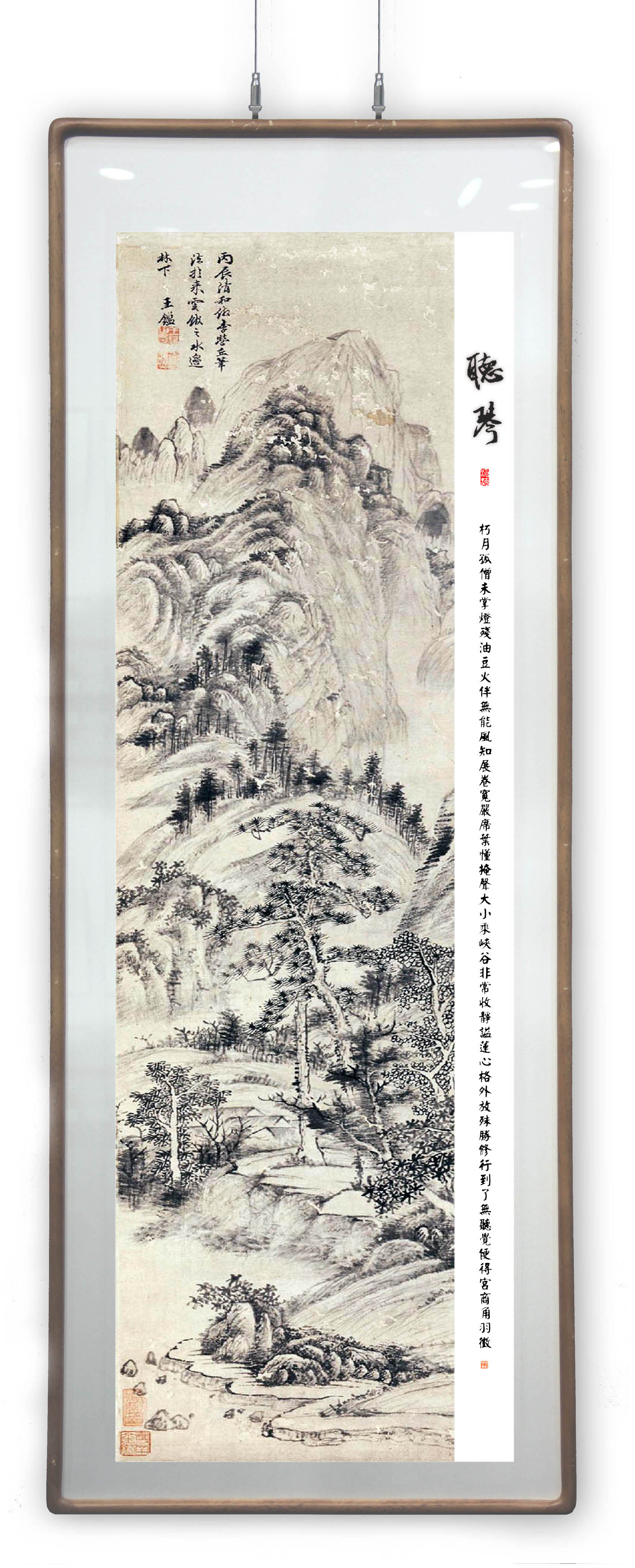所藉明•王鉴《仿李营丘笔法》立轴,水墨,纸本,画幅纵125厘米,横29厘米。