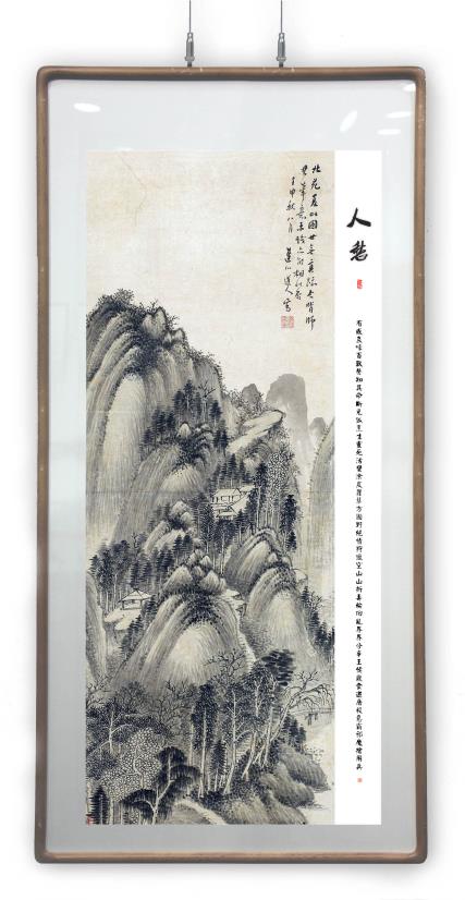 所藉清•王宸《夏山图》立轴,纸本,水墨,画幅纵107厘米,横39厘米。