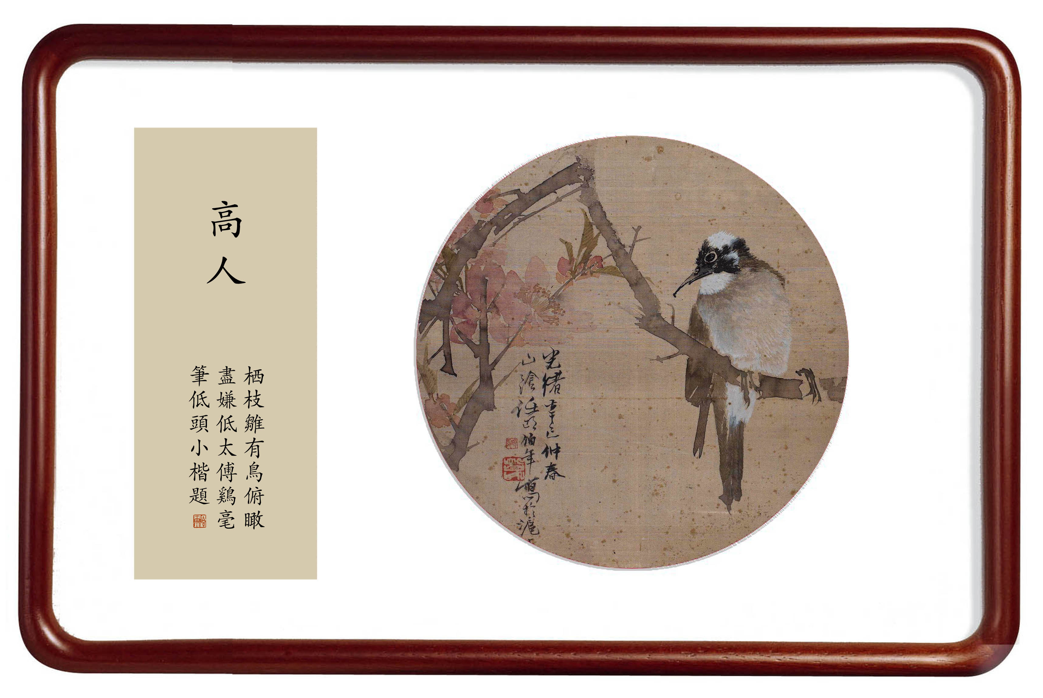 此乃电脑装裱之古画今题,标题取自唐•李白《夏景》“竹簟高人睡觉,水亭野客狂登。帘外熏风燕语,庭前绿树蝉鸣”,然与原画原词皆易趣也。