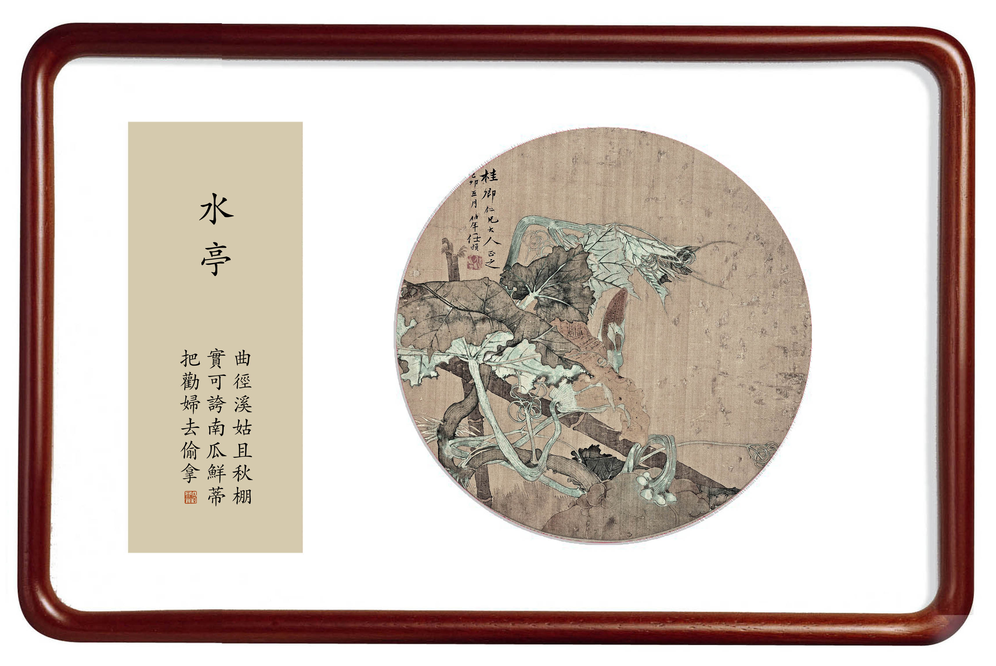 所藉清•任伯年《南瓜图》扇面,绢本,设色,直径28厘米。