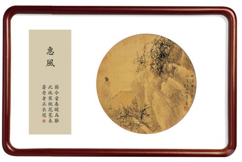 所藉清•任伯年《人物》扇面,绢本,设色,直径28厘米。