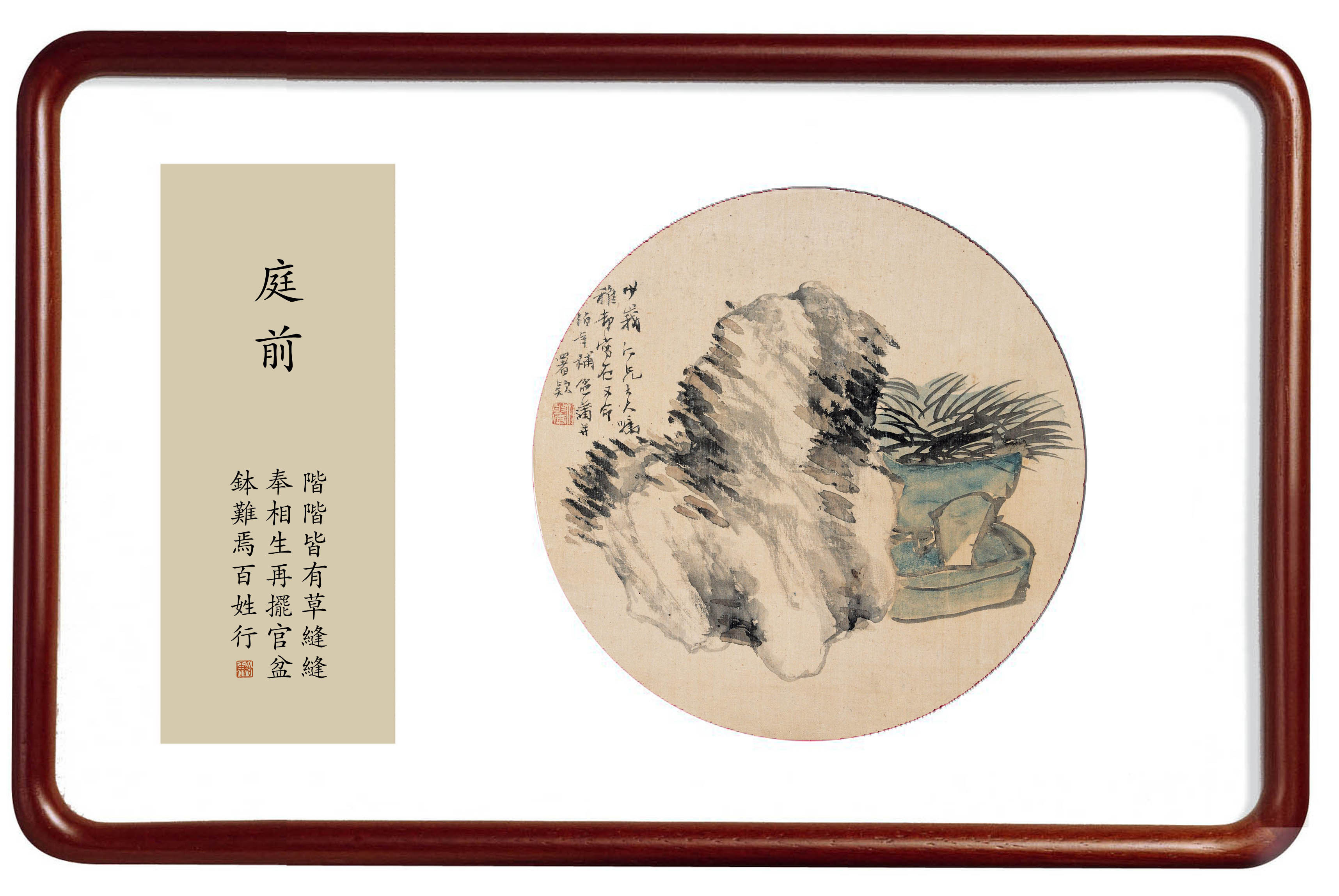 所藉清•任伯年《清供图》扇面,绢本,设色,直径28厘米。