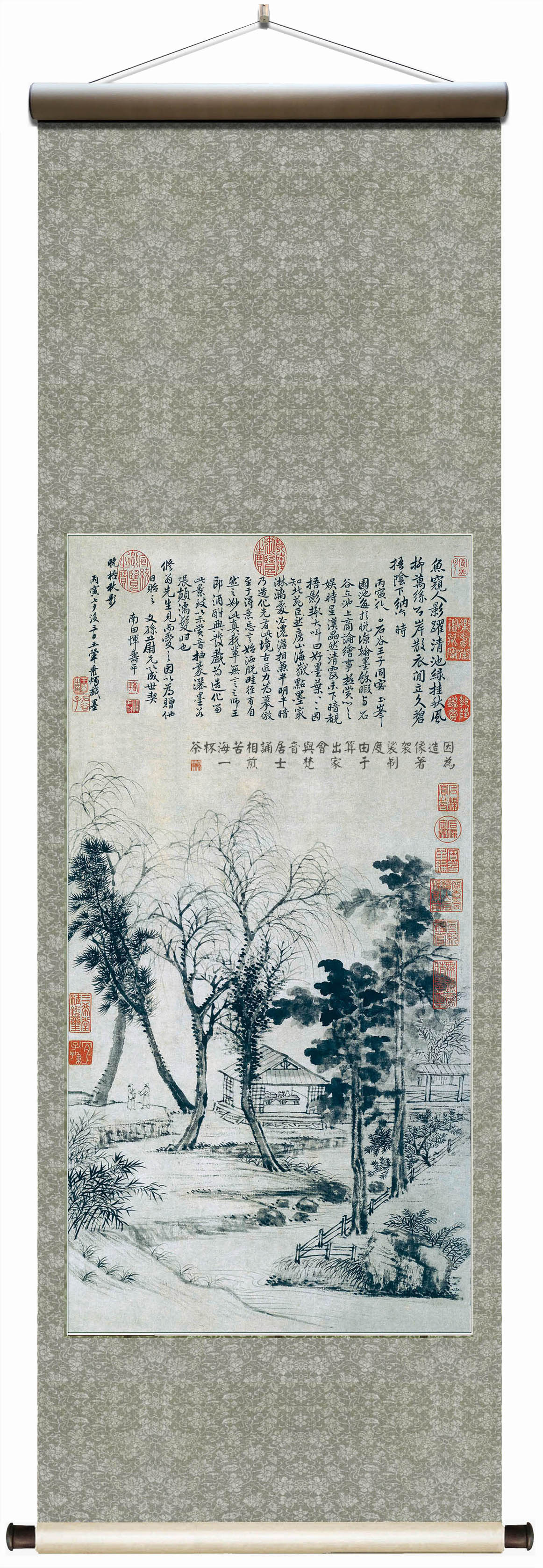 所藉清•王翚《晚悟秋映》,立轴,纸本,水墨,画幅纵109.5厘米,横43厘米。