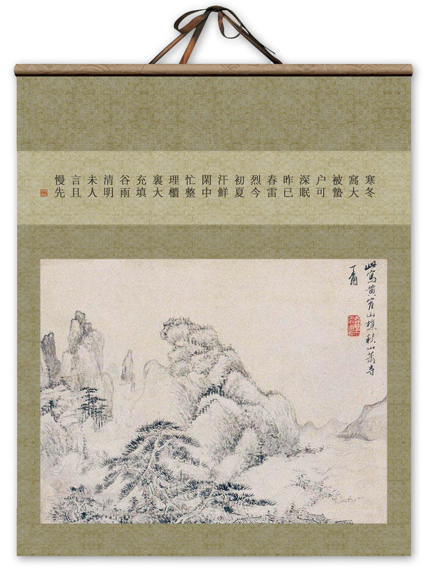 此乃电脑装裱之古画今题,标题取自宋•俞紫芝禅诗:“独坐清谈暂亦劳,碧松燃火热衾袍。夜深孺子唤不起,猛虎一声山月高”。然与原画原诗皆易趣也。
