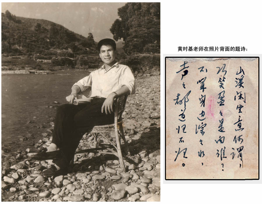 我偶尔会去看过去的照片。 记得,有那么一次,我把一张照片给阿土老师和贺老师看。那是我下放在大凤时,跑到隔壁的大坝大队去,光天化日下借一户下放干部的藤椅,偷着苦中作乐,摆了姿势,面对前方南山大队拍的“悠然见南山”。阿土顺口一首七绝“山溪闲坐意何所谓,巧笑盈盈是向谁?不闻身边淙淙水,声声都道归不归?”我请他题在作品的背面。此时此地,此句此问!我只能期待。期待什么,我也不知道。可惜,我没有他们的照片。