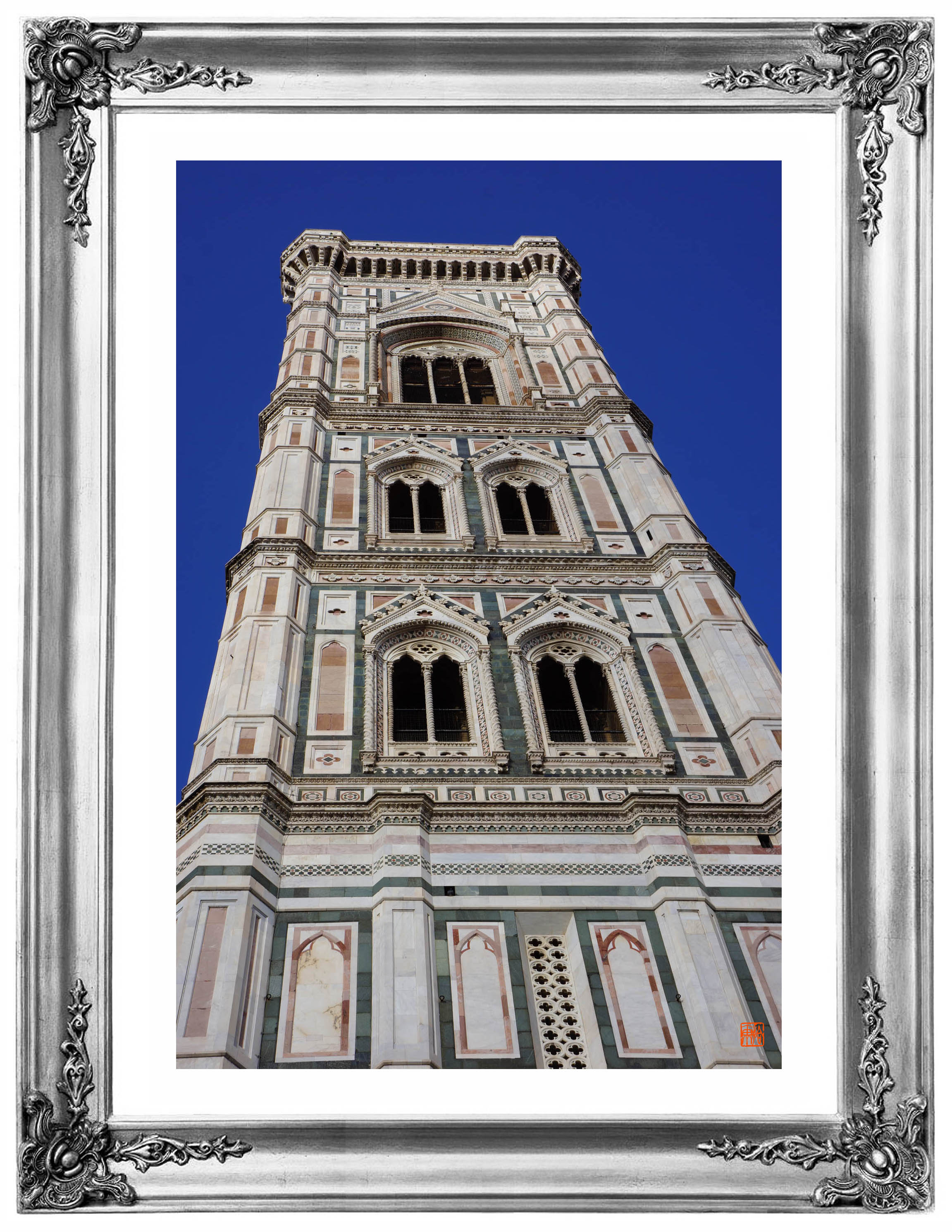 钟楼乔托的学生、建筑师、洗礼堂南面青铜门的设计者安德烈•比萨,按乔托的设计图纸施工;从1384年始建,到1387年竣工,历世三年。