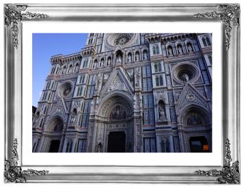 地导说:“各位贵宾!现在我们站的这里,面前就是意大利文艺复兴运动最著名的圣母百花大教堂……;那座塔叫‘乔托塔’……;再就是这边的乔万尼洗礼堂,它的大门是金色的,米开朗基罗称之为‘天堂之门’;还有一个门是‘地狱之门’……;我们就不进去了,只在这附近自由参观一下外面哈!……在这里,我给大家的时间是二十分钟,贵宾们,请记住咯!到时候,我们还是在这个地点集中!……”