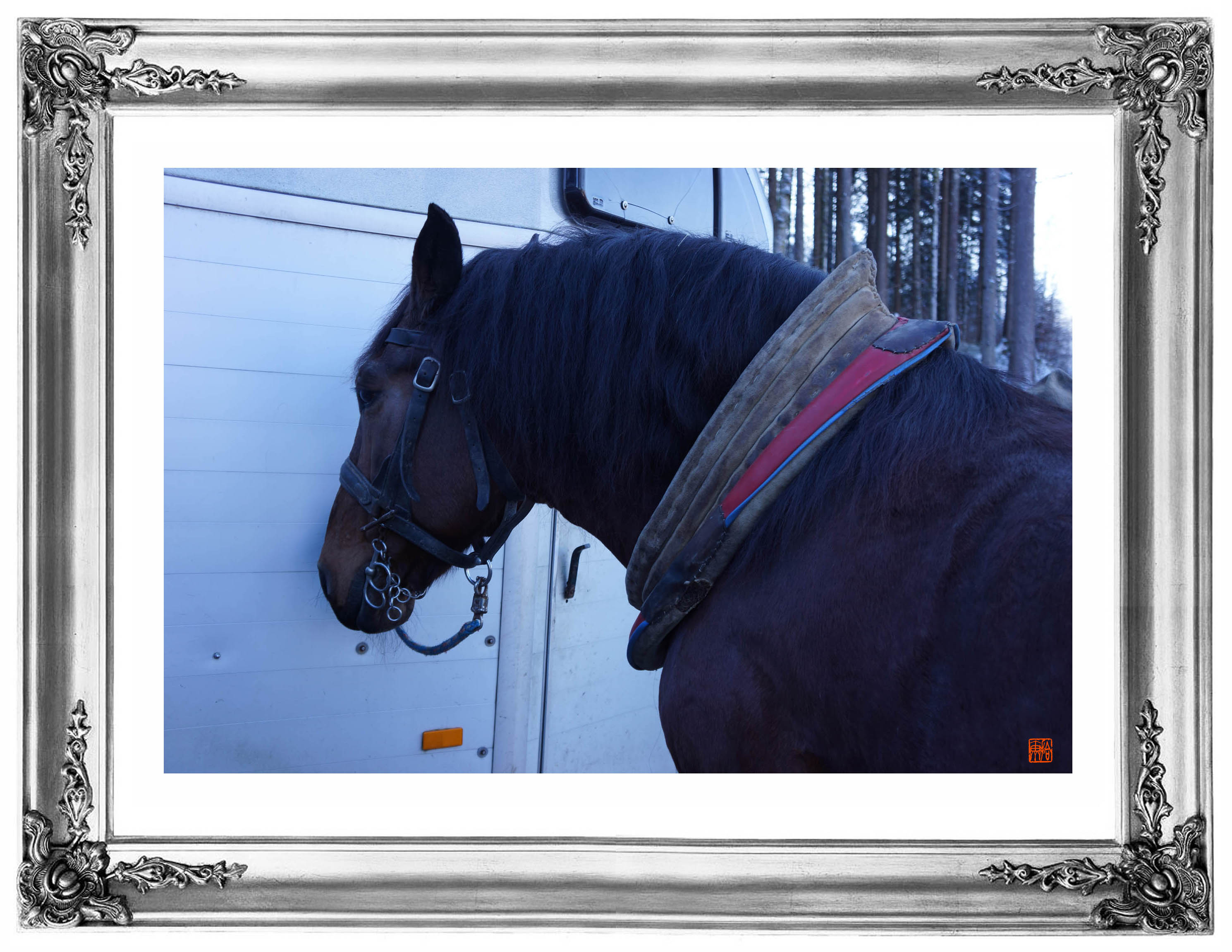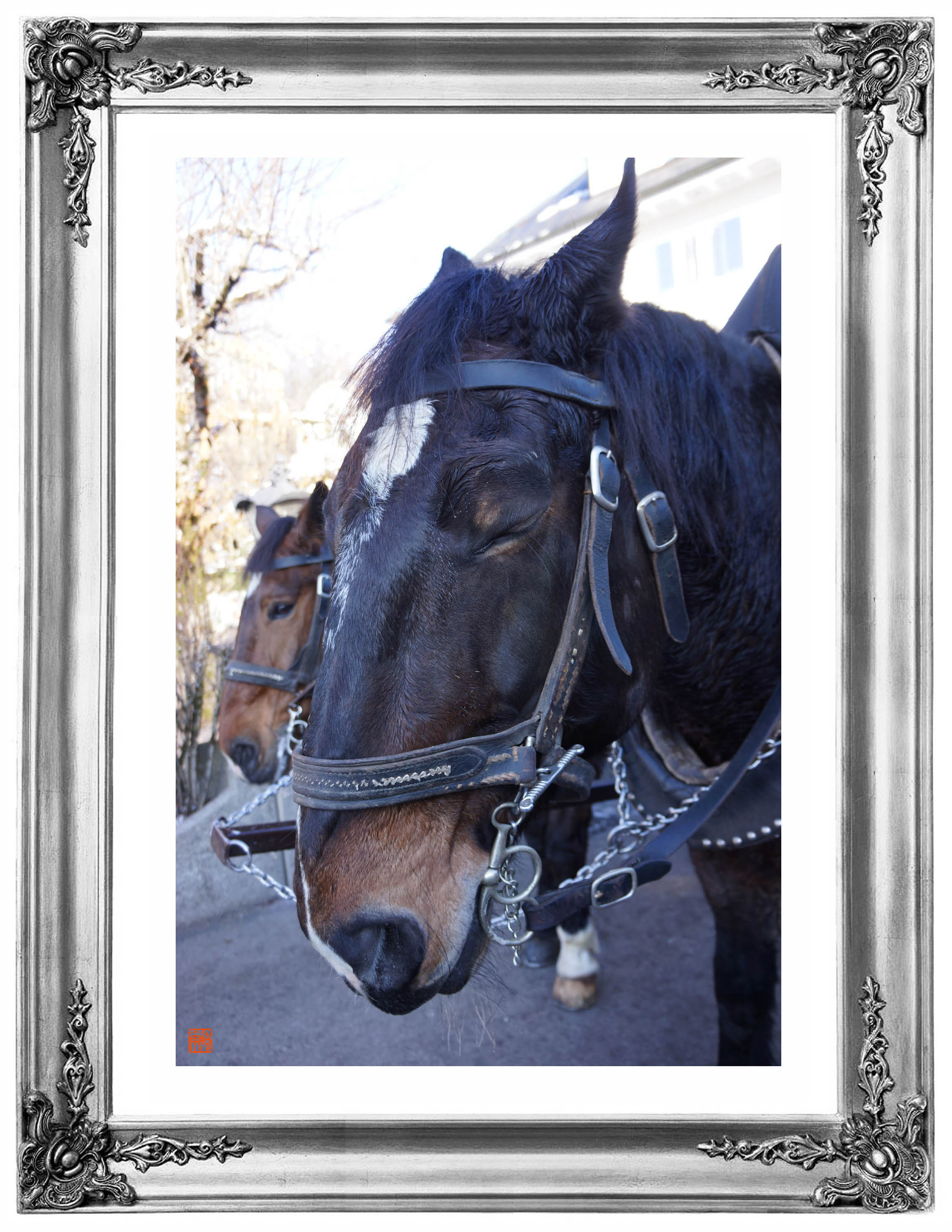 下到山脚,见到几匹下班的马,它们也没感冒,静静地在等待主人为之准备的专车回去。