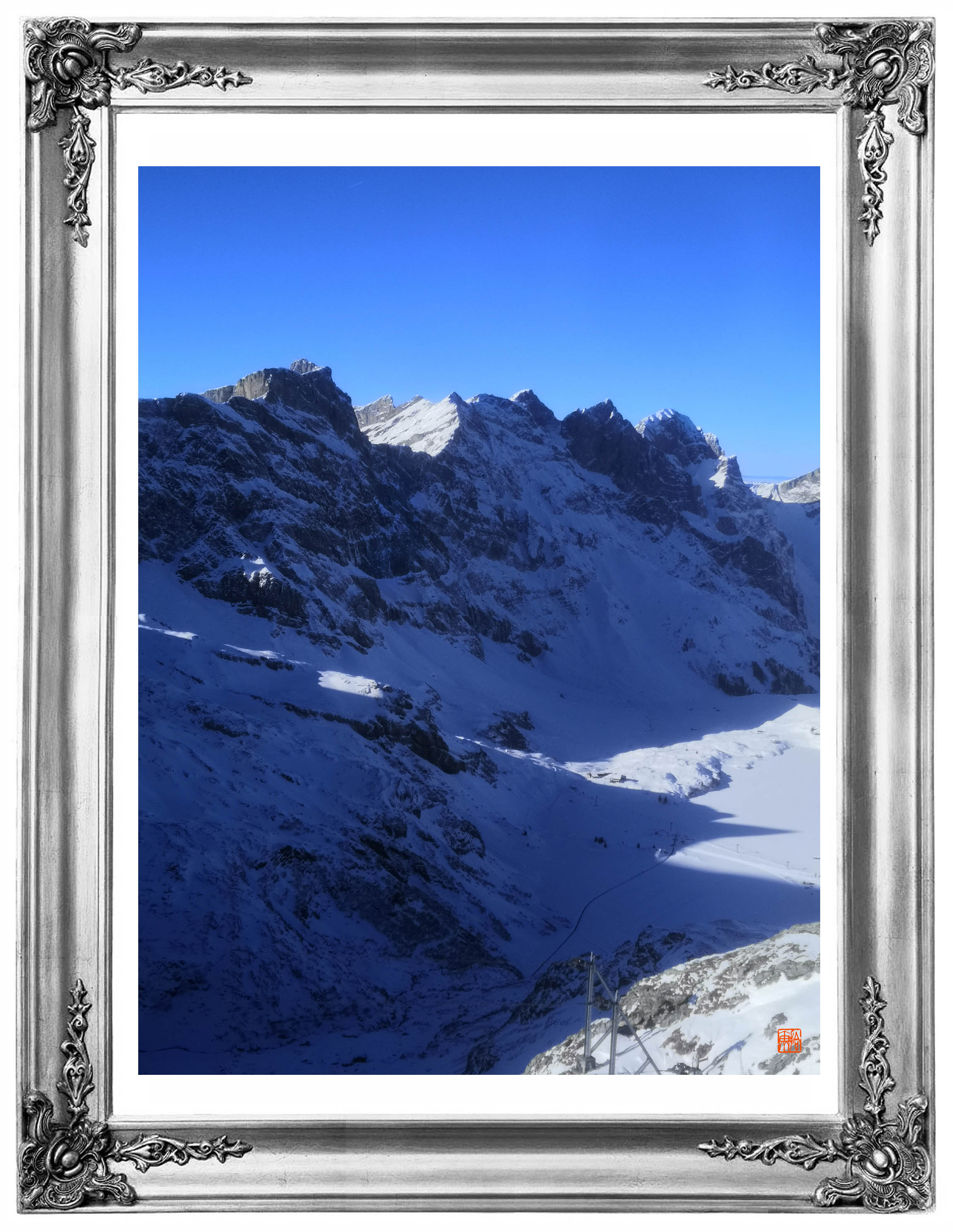 直抵铁力士山顶之后,鸟瞰目下与四周的山山峰峰峡谷冰川,遥想曾经读过的《中欧史》,看过的小说和电影,忽然联想到始于春秋战国时期的“长城”……何苦来哉的人造!何如此山此脉的天然造物!