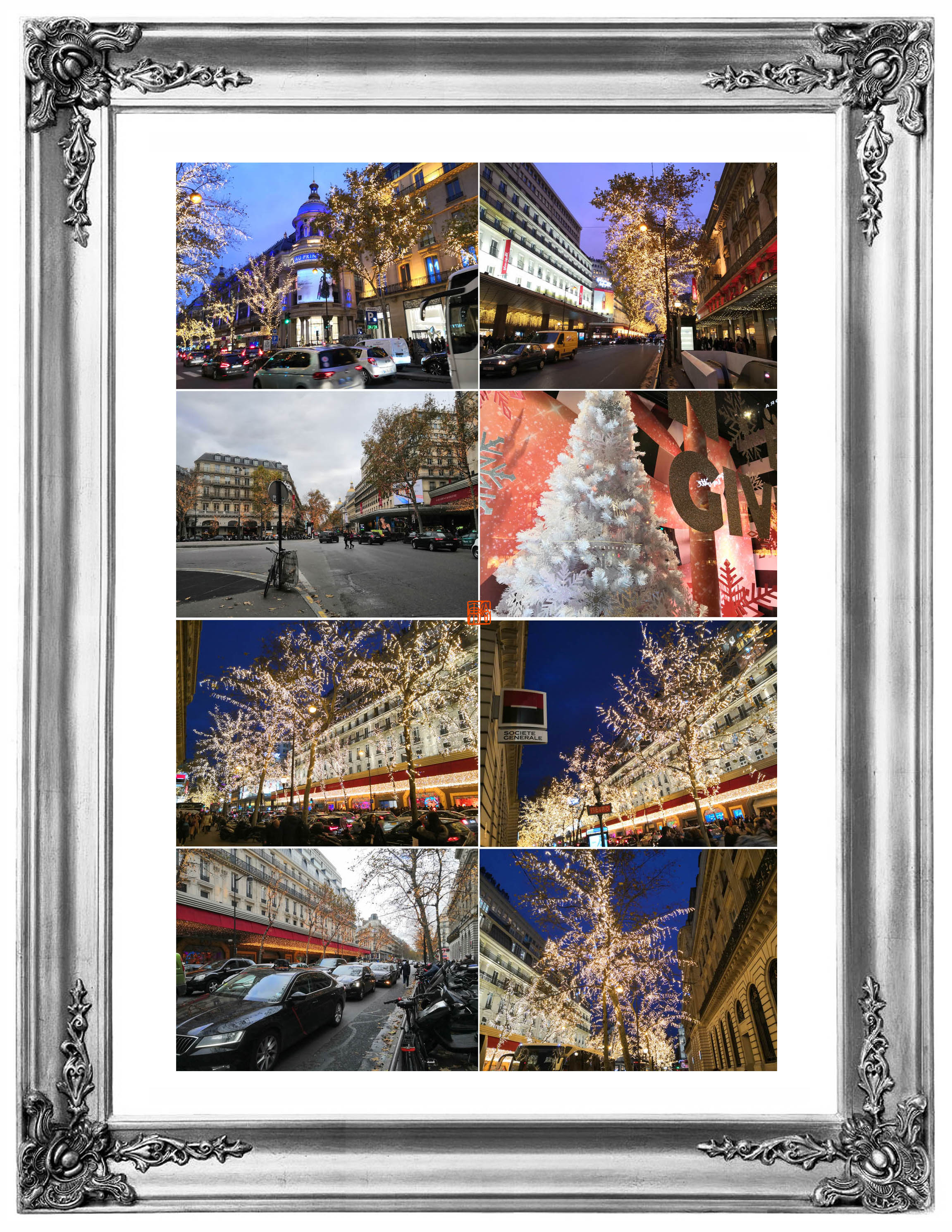 奥斯曼大街车水马龙。即使法国全国性大罢工如火如荼,但并不影响正常的生活,与即将到来的圣诞老人的雪鹿车并驾齐驱,城市观光双层大巴也仍然在运营,各种各样的交通工具还在穿梭。