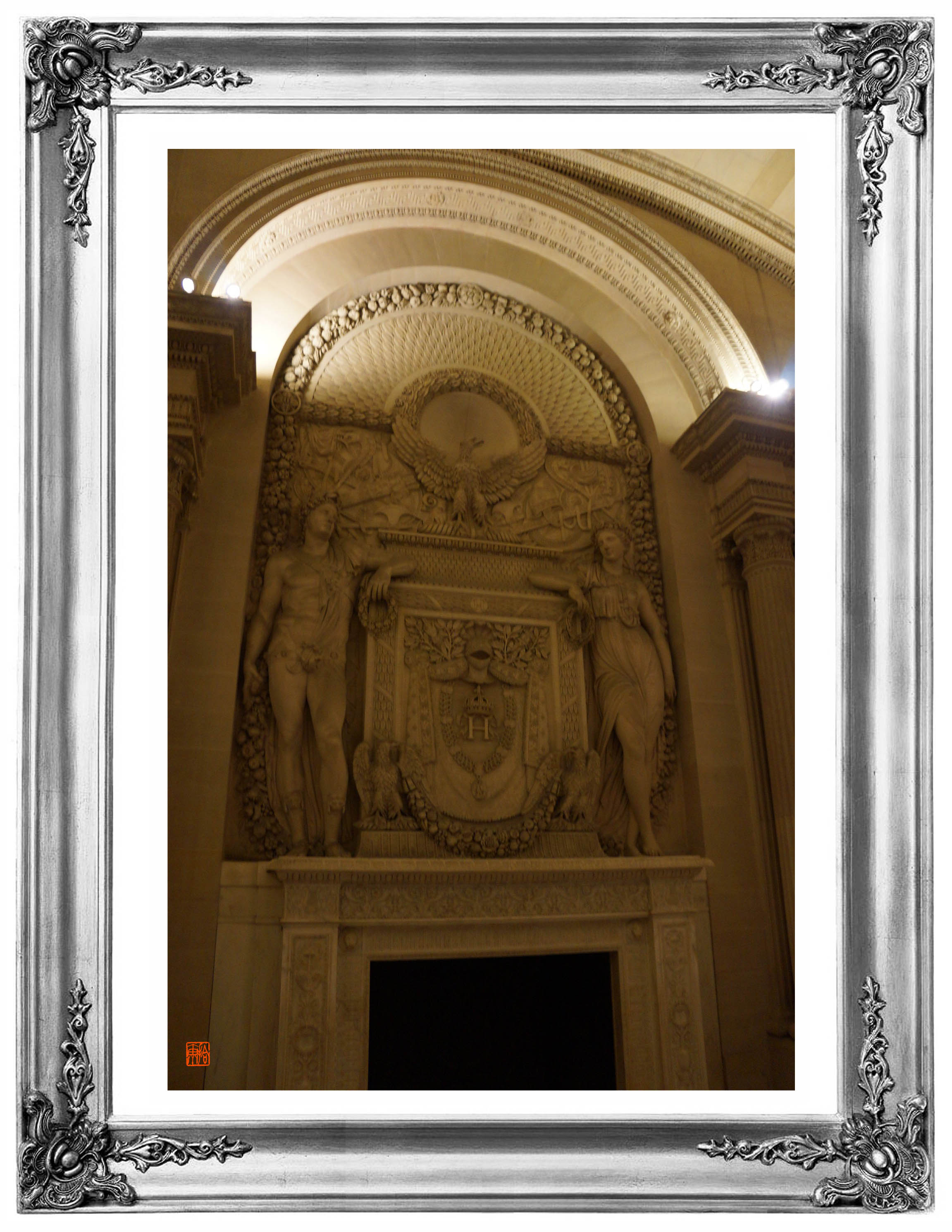 我们再度上下车,还没来得及顾盼一眼四周,就被别的好些波讲的和我们一样普通话的男男女女怂恿拥挤推推攘攘着往一条足有二十米宽七八十米长头顶老高老高天日暗无玻璃遮蔽但类似圣诞节彩灯星光璀璨闪烁而脚底“大理石”蹭光发亮的“路”快步走呀走,最后停在一个硕大的空间,两位女地导按名单,一位叫号,另一位发给每个团员一张入场券。然后,要求:“大家戴上旅行社出发之日发给个人的耳机,紧跟我们,我们会带你们参观油画馆,各位会亲眼欣赏到全世界无人不知无人不晓的蒙娜丽莎,她的微笑必将让各位为之倾倒而不虚此行,……”“各位,卢浮宫有四十万件以上的藏品,以每天早9点晚6点开放,每周二闭馆;每件藏品看三秒,还不算件与件之间的距离走步的时间,至少要看七年半!而我们今天,是卢浮宫特许延长一个半小时让我们这些远道而来的游客,以缓解白天更大量参观者的压力,……所以,现在我们开始,抓紧时间参观,时间是一个小时。”“……万一走散的话,请一定记住:等一下八点四十分,我们还是在这里集中!一定记住!”